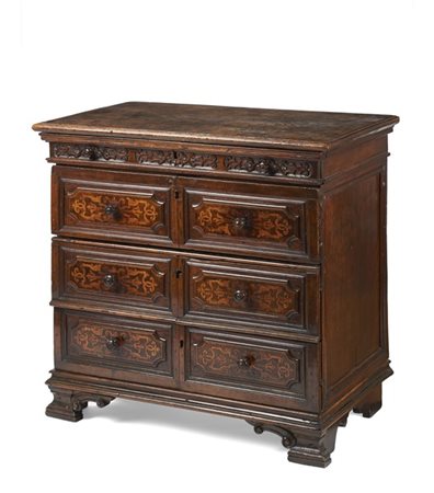 Walnut chest of drawers. Venice, 17th century (cm 90,5x84,5x54) (defects)