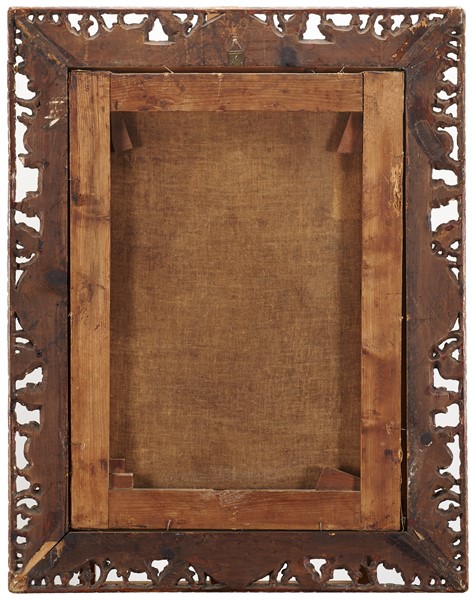 in cornice in legno intagliato, traforato e dorato (difetti)