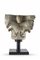 Arte del secolo XII-XIII. Capitello in pietra scolpita a volto a teste di animali e foglie d'acanto (h. cm 23) sostegno e base di epoca successiva (difetti e piccole mancanze)