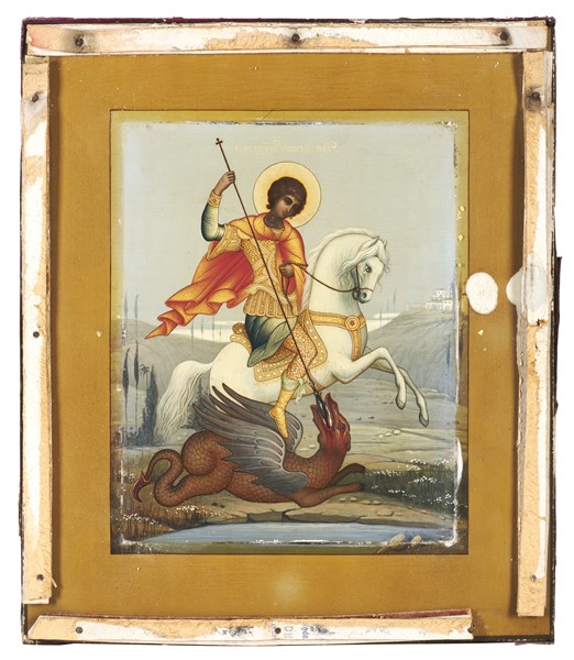 Arte russa, secolo XX. Icona a tempera su tavola raffigurante San Giorgio e il