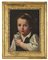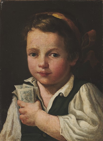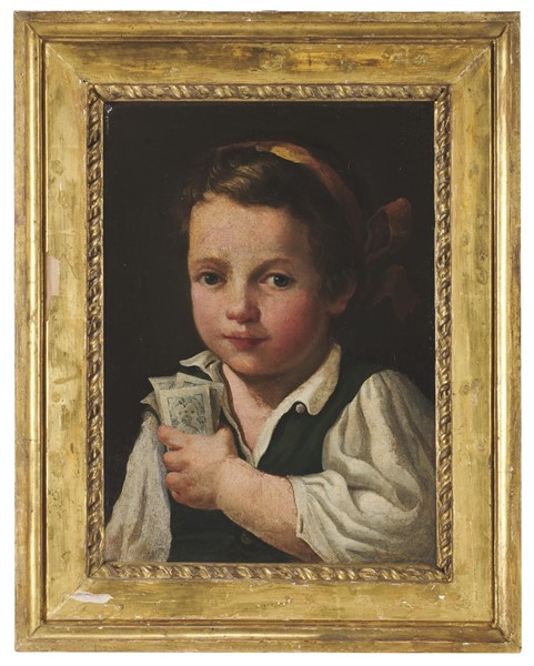 Scuola del secolo XVIII "Ritratto di fanciullo con tarocchi" olio su tela (cm