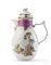 Manifattura di Meissen, 1755-1760 circa. Caffettiera piriforme in porcellana dipinta in policromia con scena campestre, bordo a squame color porpora, presa del coperchio a fiore, manico sagomato, versatoio a rocailles. Marcato sotto il manico e numerale 3 in oro sotto la base ed il coperchio (h. cm 23) (difetti)
