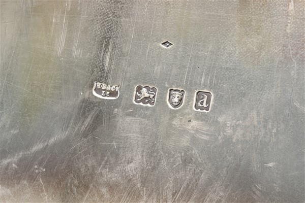 A silver tray, London, 1896. Hawksworth, Eyre & Co Ltd (cm 73x46.5) (g 3550) (slight defects)