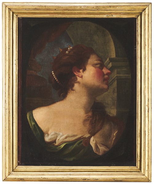 Maestro del secolo XVII "Figura femminile" olio su tela (cm 70x55) timbri a ce