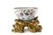 Manifattura di Meissen, 1740-1745 circa. Ciotola in porcellana policroma dipinta dalla bottega di F.J. Ferner con scene idilliache campestri e fiori policromi all'interno, esterno dipinto con rami fioriti in blu e oro. Marcata sotto la base (d. cm 17) su base in legno dorato (difetti, restauri e riprese alla doratura)