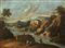 Giuseppe Zais "Paesaggio fluviale con figure e cascatella" olio su tela (cm 107x