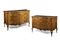 Coppia di cassettoni di forma mossa lastronati in noce e radica di noce con tre