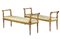 Coppia di panchetti in legno intagliato e dorato, braccioli a ricciolo scanalat