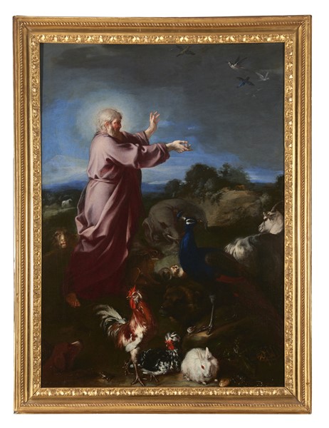 Antonio Maria Vassallo (attr.) "La creazione degli animali" olio su tela (cm 13