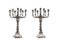 Coppia di candelabri a cinque fiamme in argento con reggi candele sagomati e de