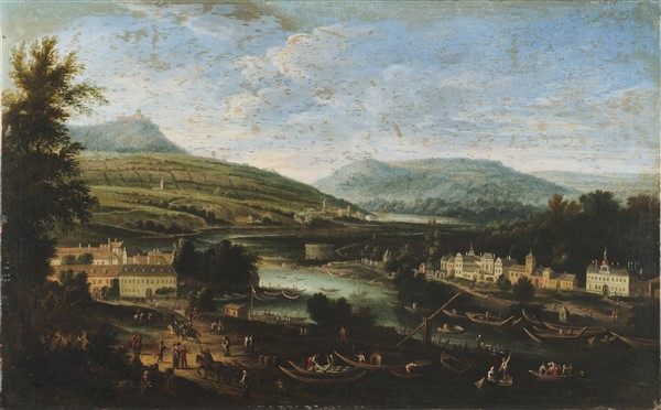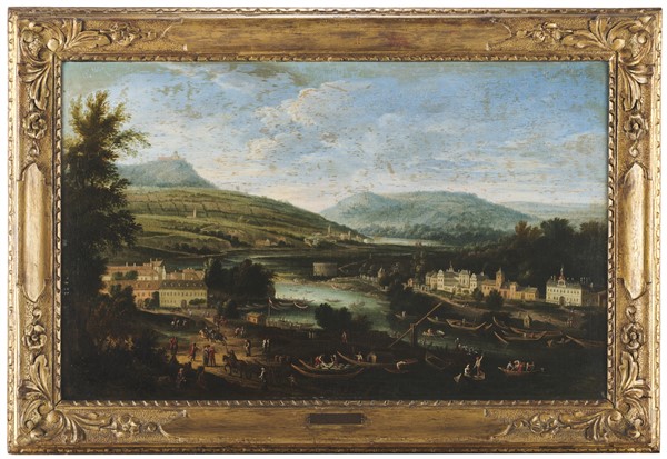 Maestro del nord Europa del secolo XVIII "Paesaggi con vedute, figure e città