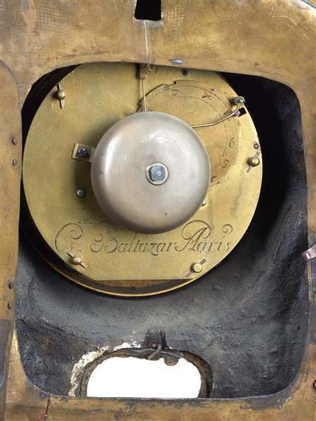 BALTHAZAR Orologio da parete del tipo Cartel d'applique in bronzo dorato e lacc