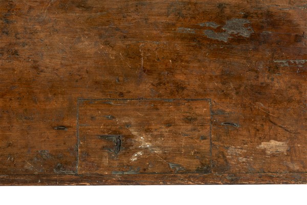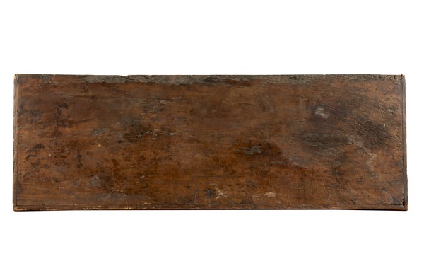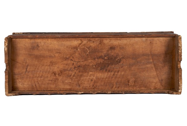 Wedding box in gilded wood, painted front with four figures, sides decorated with heraldic coat of arms. Lombardy, 15th century (cm 195x81x67) (defects and losses to the pictorial decoration)