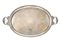Vassoio in argento di forma ovale biansato con bordo cesellato e anse a volute