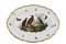 Manifattura di Meissen, secolo XIX. Vassoio a profilo mistilineo in porcellana decorata in policromia da rapaci e insetti, tesa profilata in oro (L. cm 40) (lievi difetti)