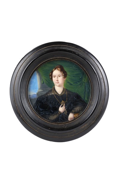 N. Corradi, secolo XIX. "Ritratto di gentildonna in un interno 1835" miniatura