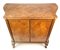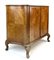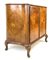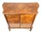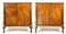 Coppia di credenze di forma mossa lastronate in noce, fronte a due ante e piedi