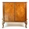 Coppia di credenze di forma mossa lastronate in noce, fronte a due ante e piedi mossi terminanti a ricciolo. Veneto, secolo XVIII (cm 105x92x49) (difetti e restauri)