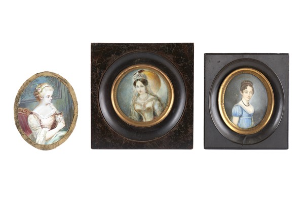 Arte del secolo XIX. Tre miniature su avorio raffiguranti gentildonne, di cui d