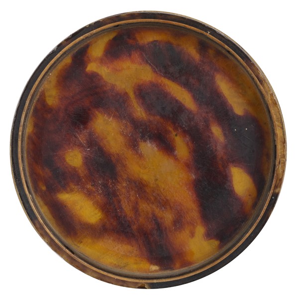 Arte di inizio secolo XIX. Coperchio di tabacchiera in tartaruga decorato con m