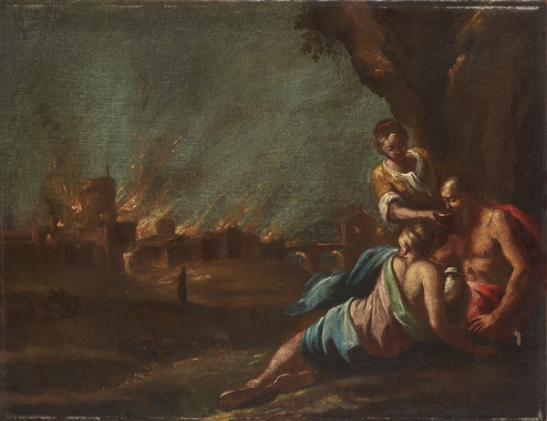 Lotto 385 | Scuola del secolo XVIII "Lot e le figlie" olio su tela (cm 44x56,5) in cornice