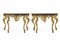 Coppia di console in legno intagliato e dorato, grembiali traforati a volute e