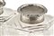 Calamaio in argento con doppio flacone in vetro molato, di forma rettangolare con ringhiera traforata. Londra, 1923. Argentiere Thomas Bradbury (cm 27x6x18) (g netti 700) (difetti)