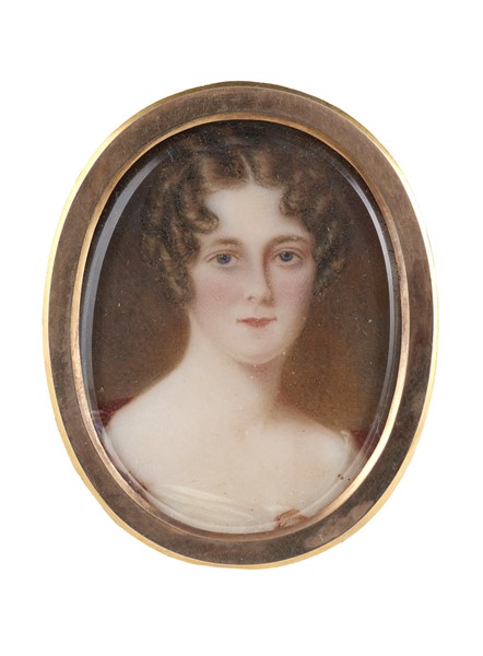 Maestro del secolo XIX. "Ritratto di gentildonna" miniatura ovale su avorio (cm