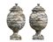 Coppia di vasi ovoidali con coperchio in breccia su base quadrata (h. cm 53) (difetti e piccoli restauri)