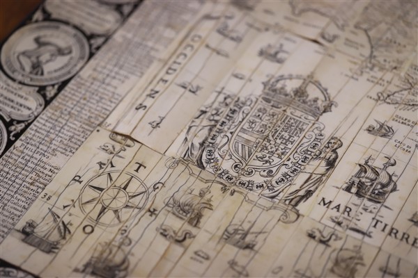 Art of the 16th-17th century. Wooden floor in ebonized wood with a pyrographic ivory showing the map of the Kingdom of Naples with the coat of arms of Philip II (cm 54,5x79) (defects, restorations and losses)