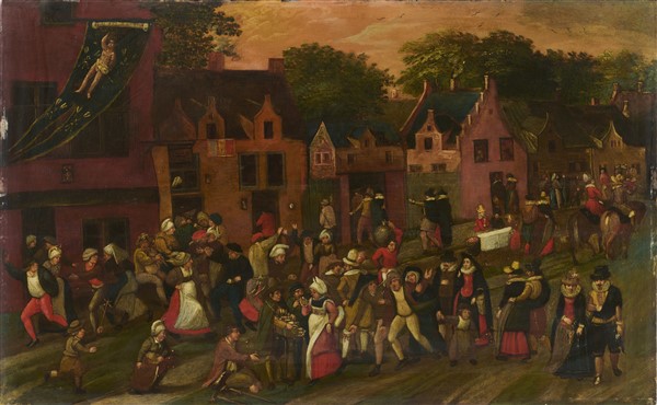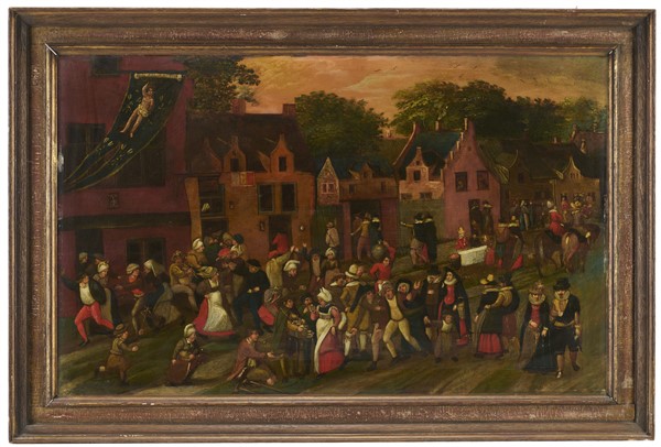 Scuola fiamminga del secolo XVII "Festa di villaggio" olio su tavola (cm 52x84