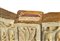 Console in legno intagliato, dipinto e scanalato, fascia dentellata con decoro
