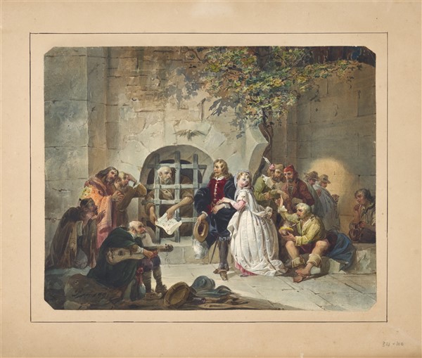Cesare Provaggi "Scena galante" acquerelli su carta (mm 236x297) firmato "Provag