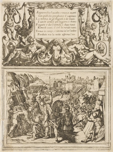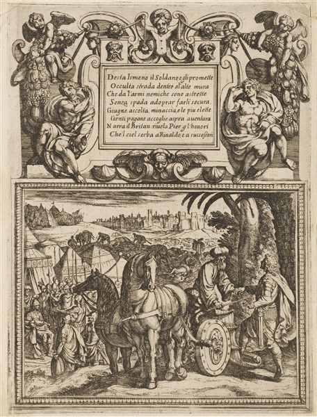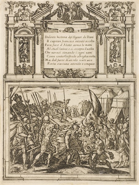 Lotto composto da quattro acqueforti raffiguranti episodi della "Gerusalemme Liberata"