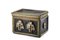 Scrigno in legno rivestito in ferro brunito con bordure in bronzo e doppio mascherone sul fronte. Secolo XIX (cm 33x23x23) (difetti e restauri)