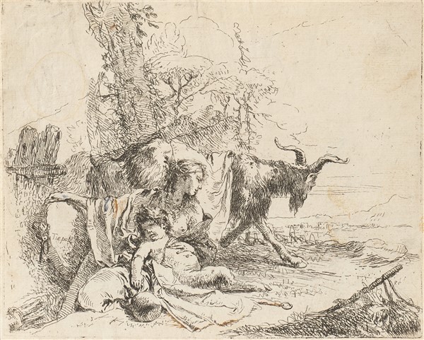 Giambattista Tiepolo "Ninfa con un piccolo satiro" acquaforte (mm 143x177 il fog