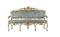 Divano in legno intagliato, dipinto e dorato con schienale sormontato da cartel