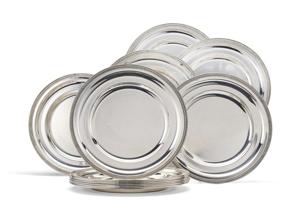 Twelve silver plates. Alessandria, Ricci silversmith (g 6600) (d 29,5 cm) (slight defects)