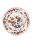 Manifattura di Pasquale Rubati, Milano 1770-1780. Piatto tondo in maiolica a bordo liscio e fondo ribassato. Decorazione in rosso, blu e oro 'alla peonia' e sulla balza a intrecci e riserve (d. cm 23) (usure e sbeccature)