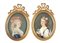 Firma indecifrata, fine secolo XIX. "Dame" coppia di miniature ovali su avorio (cm10x8) in cornici in metallo dorato con cimasa a fiocco (lievi difetti)