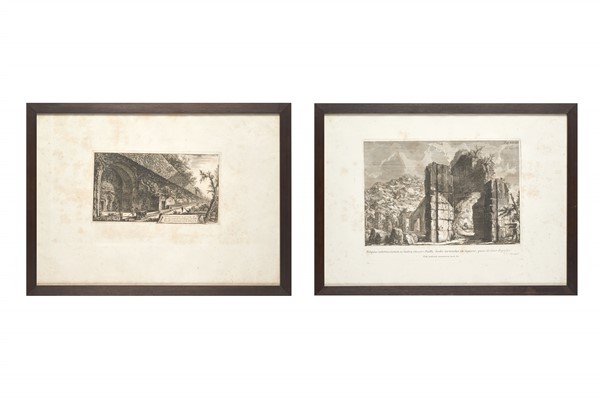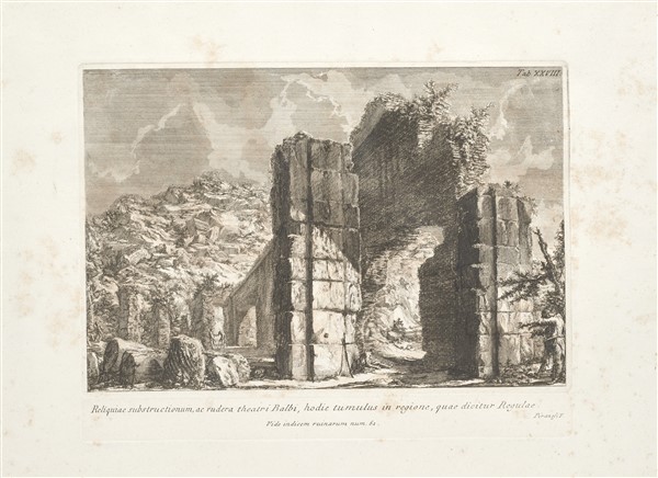 "Reliquiae substructionum, ac rudera theatri Balbi'' from the series "Campus Martius Antiquae Urbis" and "Demonstration in large of that part of sustructions which [...] is mentioned by the letter A." from the series ''Of two caverns adorned by the ancients''