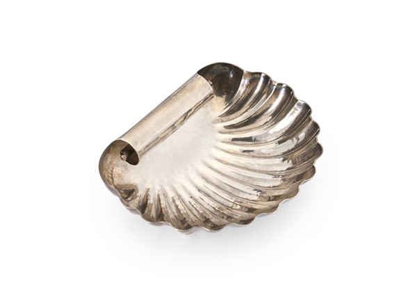 MARIO BUCCELLATI. Ciotola in argento martellato a forma di valva di conchiglia in argento. Marcato "Mario Buccellati" (cm 12x9,5) (g 130) In scatola originale (lievi difetti)