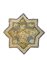 Persian manufacture, late 13th century-early 14th century. A polychrome ceramic eight-pointed star with a bird between vegetation and calligraphic border (cm 20x21) (reconstructed with integrations)