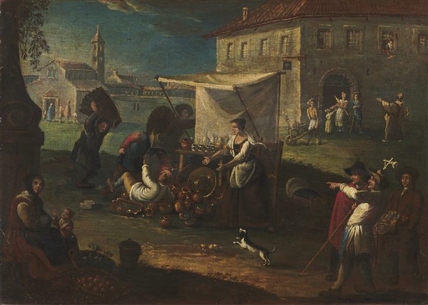 Pietro Domenico Olivero (attr.) "Scena di genere" olio su tela (cm 54,5x77) in