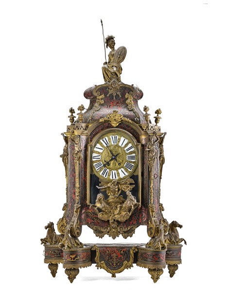 Lotto 702 | Pendola di forma mossa in stile "Boulle" con cassa a marqueterie in metallo e t