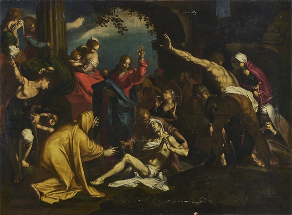 Scuola della fine del secolo XVIII "La resurrezione di Lazzaro" olio su tela (