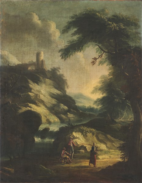 Pair of oil paintings on canvas depicting ''River Landscapes with Figures''