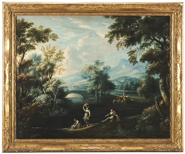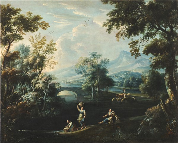 Scuola dell'Italia settentrionale del secolo XVIII "Paesaggio con lavandaie" o