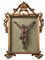 Artista del secolo XVIII. "Cristo crocifisso", scultura in legno in cornice in legno intagliato, traforato e dorato (h. cm 34) (lievi difetti)