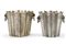 Due rinfresca bottiglie sagomati in argento con corpi incisi a motivi vegetali.